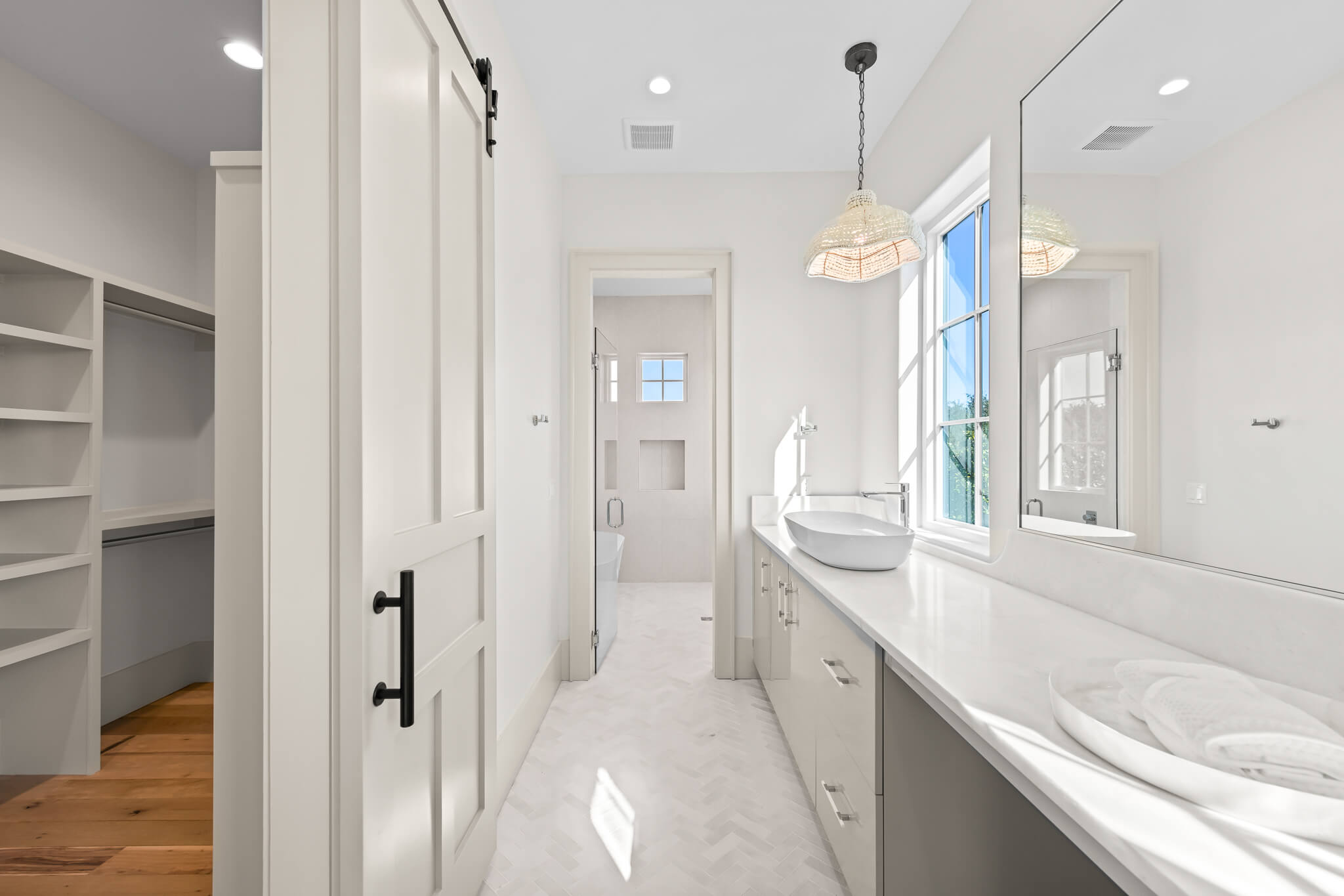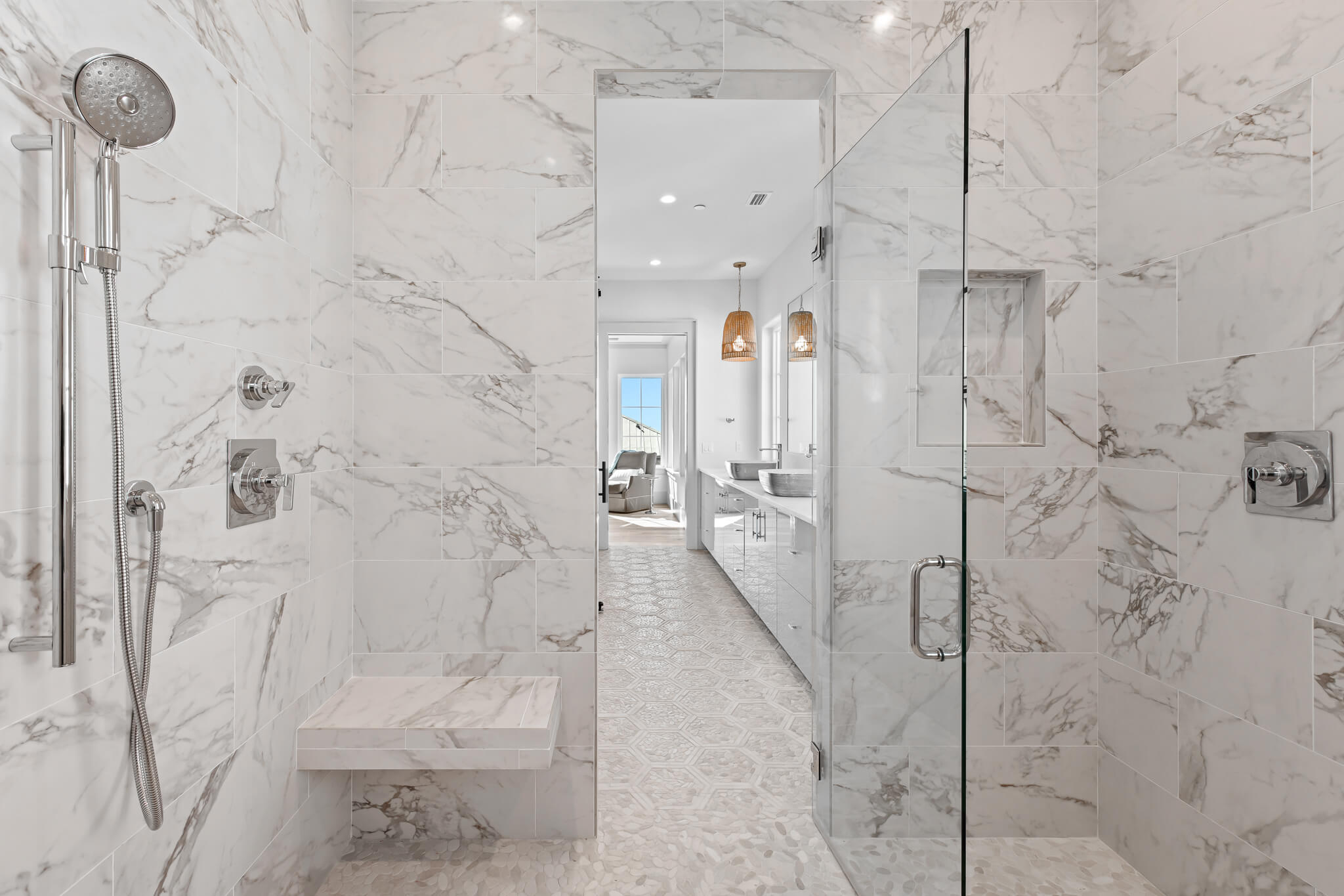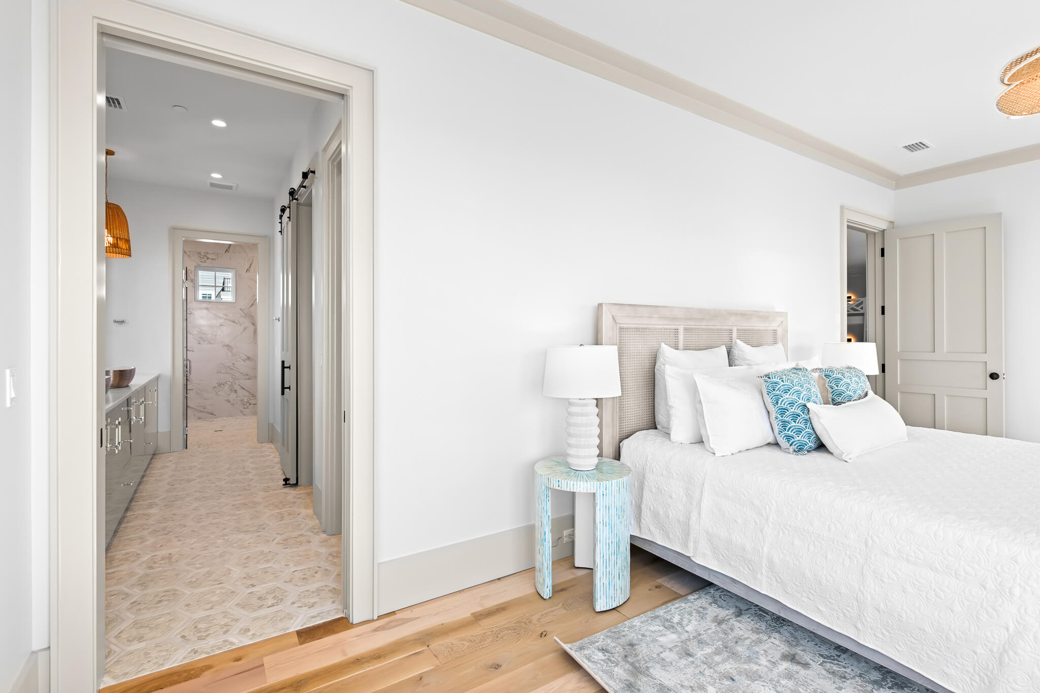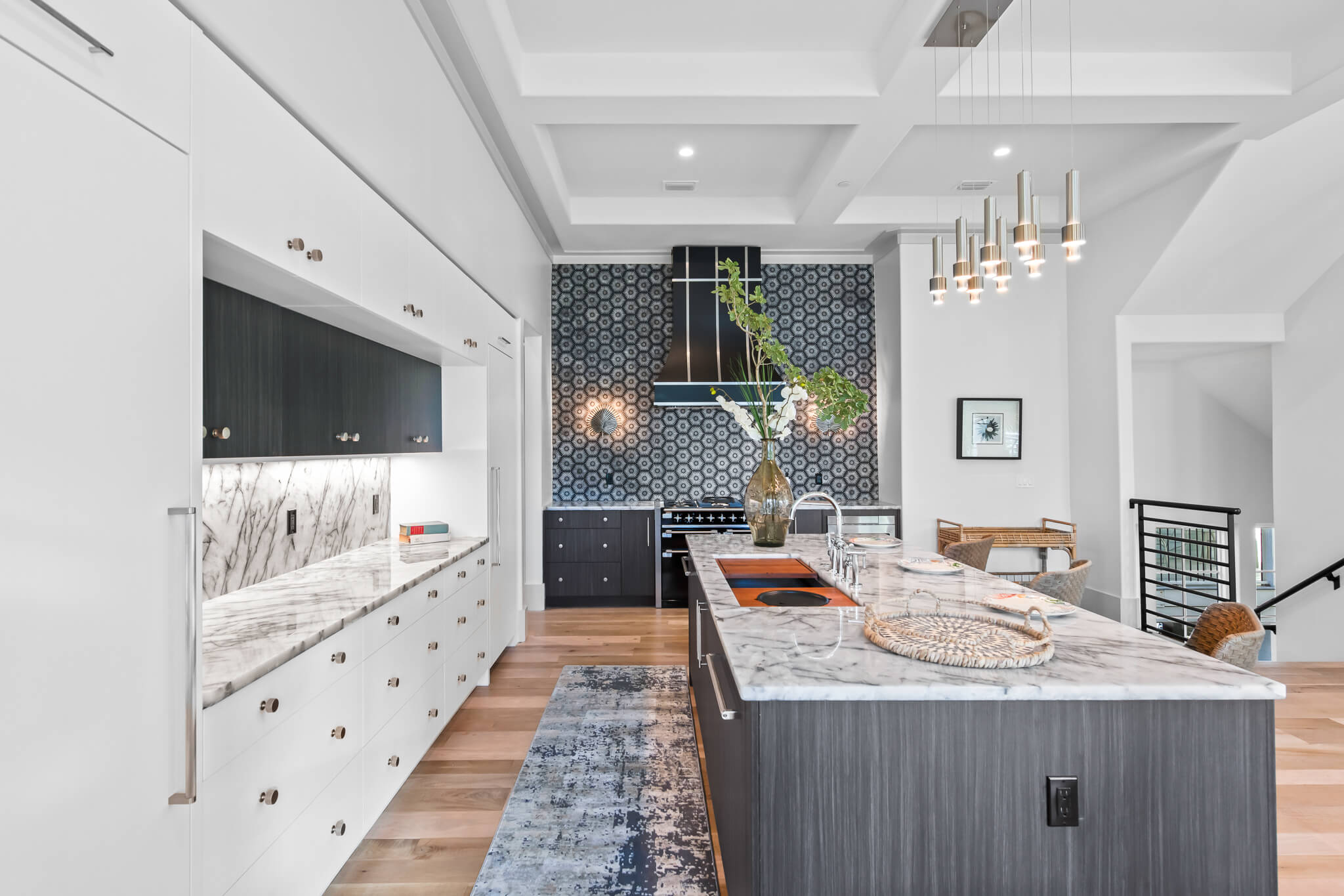 Spanning more than 7,000 square feet with seven bedrooms, seven full baths, and two half baths, the home was meticulously crafted by the renowned Minchew Design Build Firm to celebrate light, texture, and flow. Every surface tells a story—from hand-selected marble and quartzite to bespoke millwork and architectural detailing—each element chosen to engage the senses and elevate daily living.